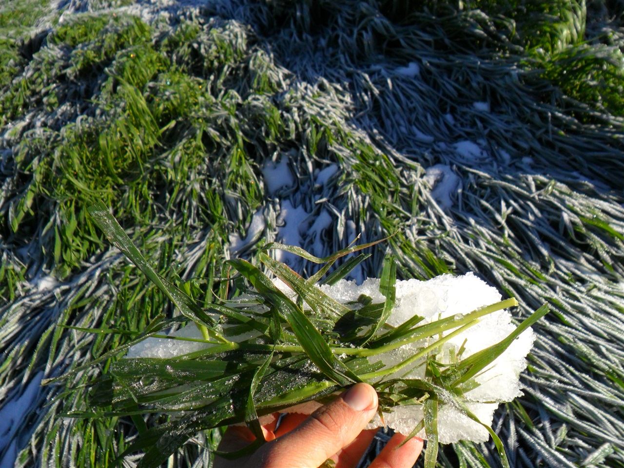 Foto enviada por Eduardo Pletz de pastagem de aveia coberta por gelo - Região de Guarapuava-PR