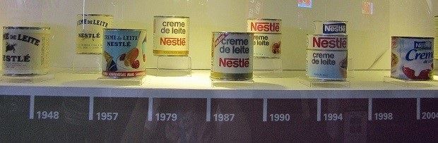 Entre os itens expostos estão latas do Leite Moça de 1921, 1937, 1950, 1962, 1972, 1982 e 1990. Há ainda latas do achocolatado Nescau. A primeira, de 1932, traz o nome "Nescao". As demais, de 1955, 1960, 1972, 1991, 1994, 1999, 2002 e 2005 já trazem o nome atual da marca.