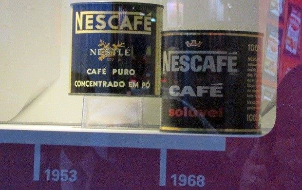 Também foram expostas as embalagens do Nescafé de 1953 e 1968 (Foto: Karina Trevizan/G1)
