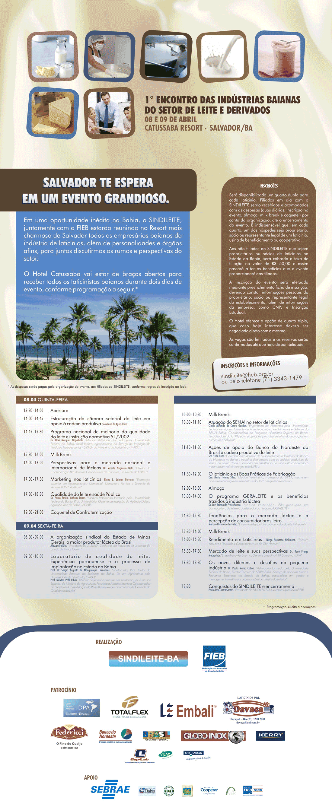 O 1º Encontro das Indústrias Baianas do Setor do Leite e Derivados será realizado em Salvador (BA) durante os dias 8 e 9 de Abril.