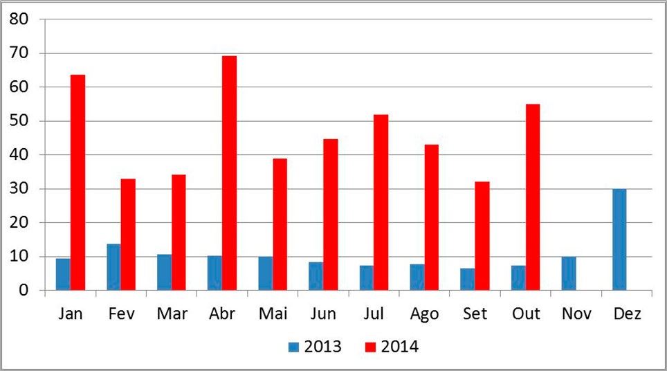 Quanto aos equivalentes em leite (a quantidade de leite equivalente para cada produto), foram internalizados 71,5 milhões de litros (+21% com relação ao mês anterior) e exportados 55 milhões de litros (aumento com relação ao mês de setembro de 71%, fazendo com que os valores de exportação deste ano com relação ao ano anterior, no acumulado de meses até outubro, ficasse em patamares de 411% acima.