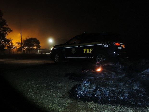 Pneus foram queimados na BR-158, em Júlio de Castilhos (Foto: PRF/Divulgação)