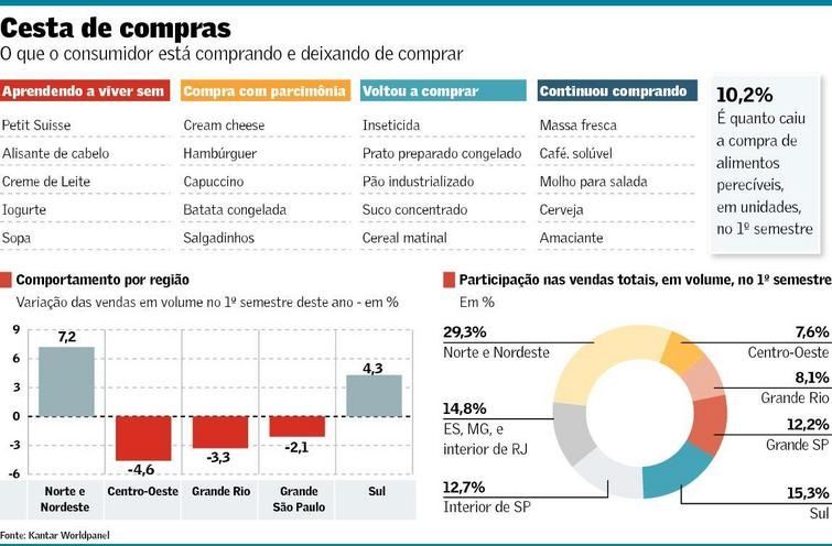 Diante disso, o consumidor continua cauteloso quando vai ao supermercado. Pesquisa realizada pela Kantar Worldpanel, em 11,3 mil domicílios em todo o país, identificou que esse comportamento reflete um orçamento apertado.
