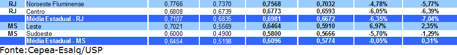 Tabela 2. Médias estaduais das novas regiões - RJ e MS.