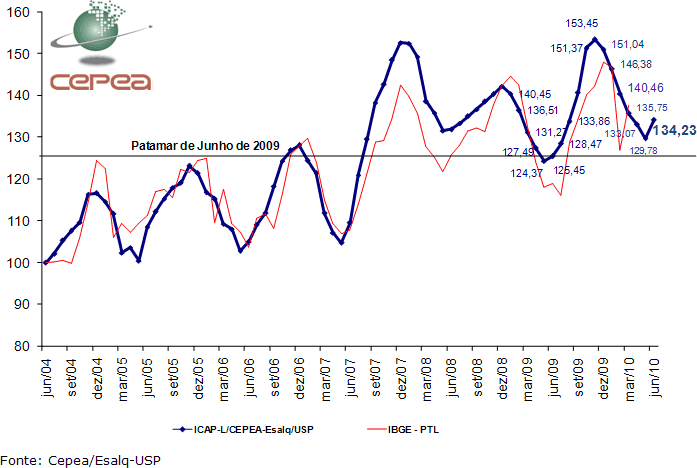 Gráfico 1. ICAP-L/Cepea - Índice de Captação de Leite - junho/10 (Base100=Junho/2004).