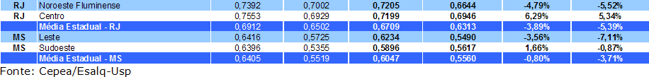 Tabela 2. Médias estaduais das novas regiões - RJ e MS.