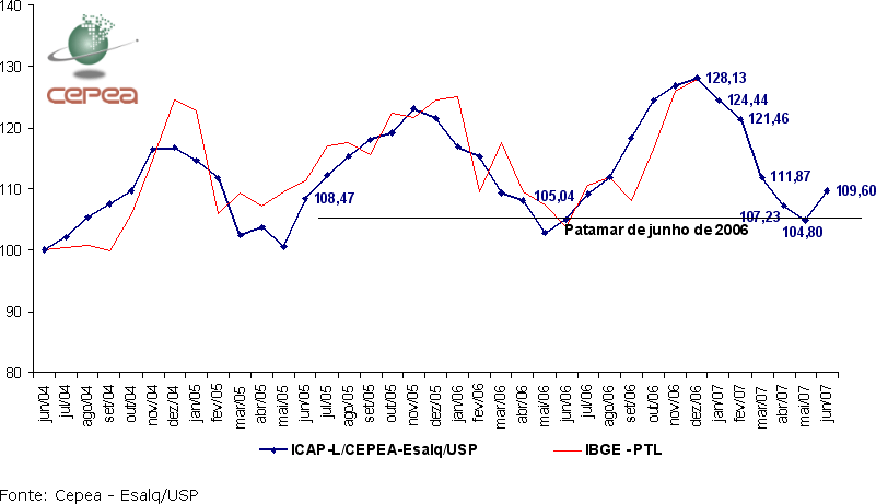 Gráfico 1. ICAP-L/Cepea - Índice de Captação de Leite (Junho de 2004 = 100) - Junho/07.