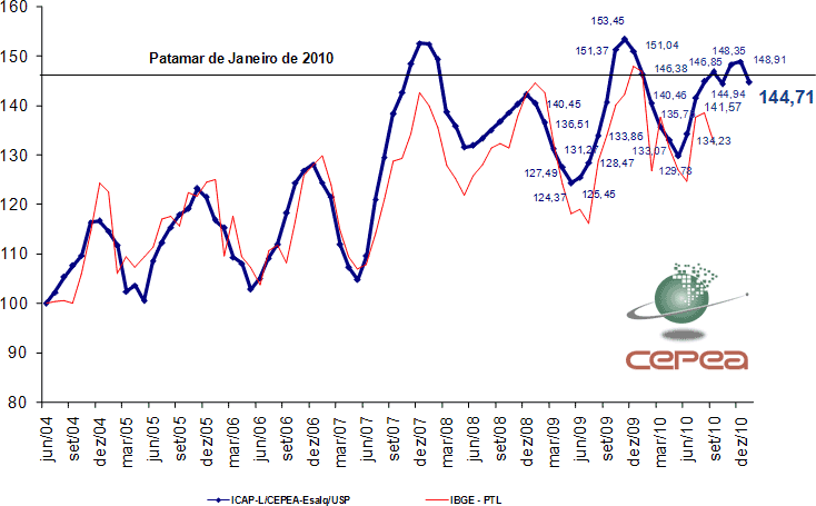Gráfico 1. ICAP-L/Cepea - Índice de Captação de Leite - Janeiro/11. (Base 100=Junho/2004).