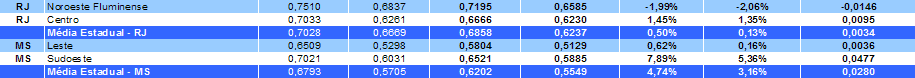 Tabela 2. Médias estaduais das novas regiões - RJ e MS