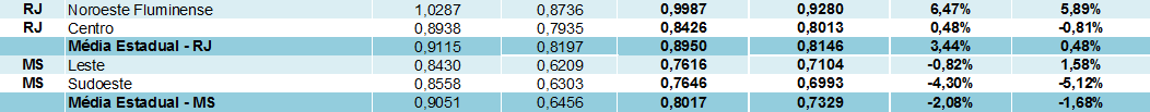 (média de RS, SC, PR, SP, MG, GO e BA)