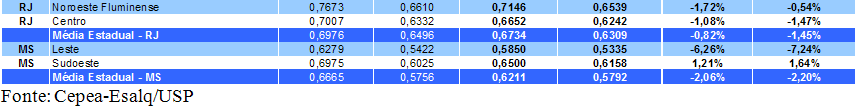 As informações são do Cepea-Esalq/USP, adaptadas pela Equipe MilkPoint.