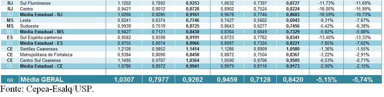 Tabela 2. Preços em estados que não estão incluídos na “média Brasil” – RJ, MS, ES e CE