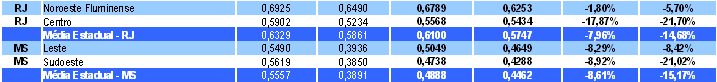 Tabela 2. Médias estaduais das novas regiões - RJ e MS.