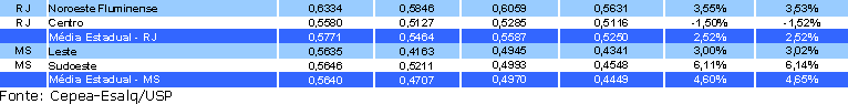 Tabela 2. Médias estaduais das novas regiões - RJ e MS.