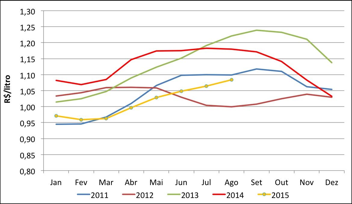 Segundo pesquisadores do Cepea, a demanda pouco aquecida limitou a valorização do leite na entressafra deste ano (predominantemente entre março e julho), o que diferiu dos anos anteriores, quando foram registrados picos expressivos de alta nesse período. Desse modo, a elevação dos preços ocorreu de forma mais gradual, se estendendo até agosto, quando, tipicamente, a entressafra no Sudeste e Centro-Oeste se encerra e a produção leiteira no Sul se consolida.