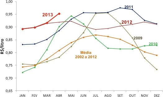 Segundo pesquisadores do Cepea, o aumento esteve atrelado à queda na produção em março, como normalmente ocorre nesse período, por conta do início da entressafra. Com essa restrição na captação de leite, agentes consultados pelo Cepea relataram disputa acirrada entre os laticínios.