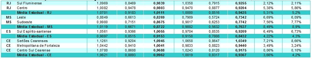 Tabela 2. Preços em estados que não estão incluídos na “média nacional” – RJ, MS, ES e CE
