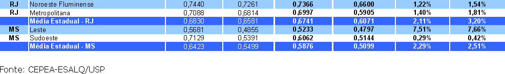 Médias estaduais das novas regiões, RJ e MS