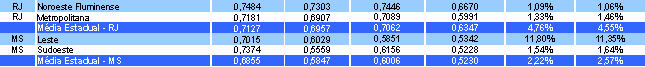 Tabela 2. Médias estaduais das novas regiões - RJ e MS