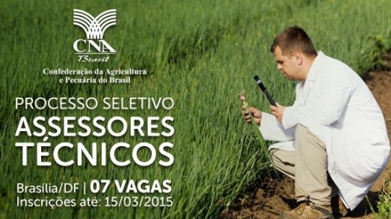 A Confederação da Agricultura e Pecuária do Brasil (CNA) torna pública as inscrições para o processo seletivo, prevendo a contratação de Assessores Técnicos para as áreas de: