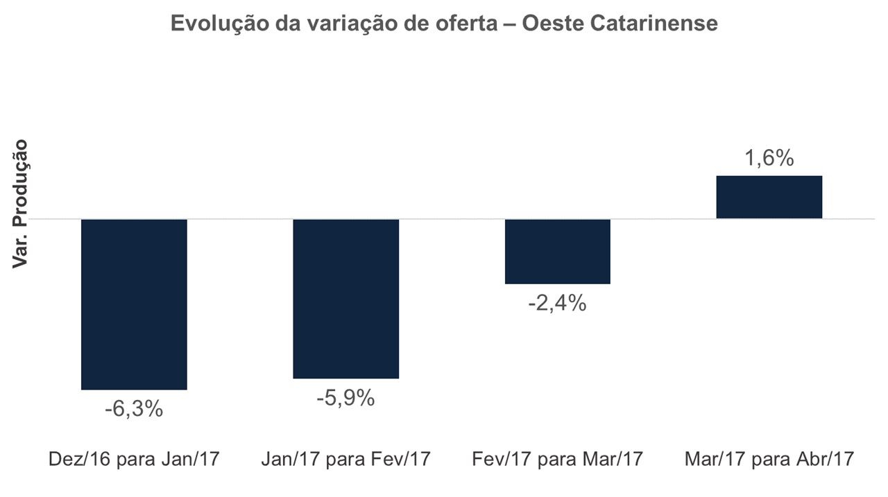 Gráfico 4. Variação de oferta entre os meses – Oeste Catarinense.