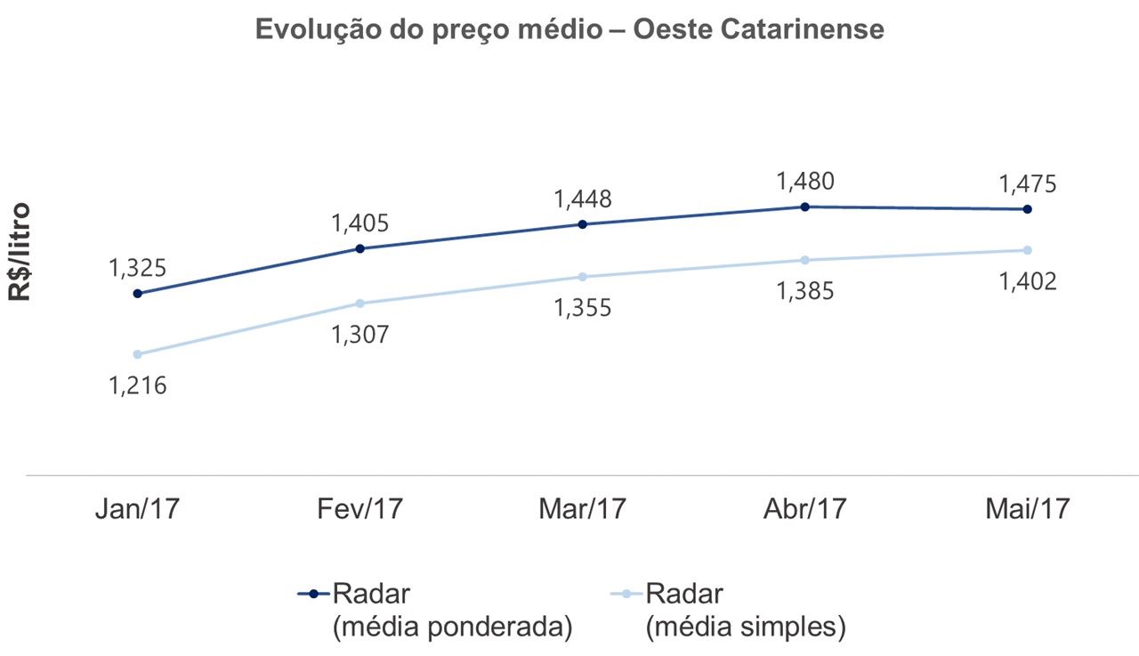 Gráfico 5. Evolução dos indicadores de preços líquidos do Oeste Catarinense no MilkPoint Radar (2017).