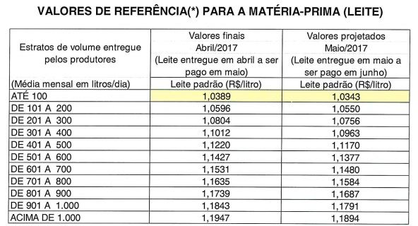 A diretoria do Conseleite - Mato Grosso do Sul reunida no dia 12 de maio de 2017, aprova e divulga os valores de referência para a matéria-prima, referente ao leite entregue no mês de abril de 2017 e a projeção dos valores de referência para leite a ser entregue no mês de maio de 2017.