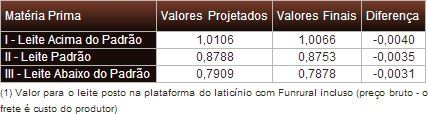 Tabela 2: Valores Projetados da Matéria-Prima (Leite) de Referência1, em R$ – Maio de 2014.