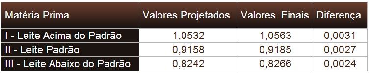 Tabela 2: Valores Projetados da Matéria-Prima (Leite) de Referência1, em R$ – Setembro de 2013.