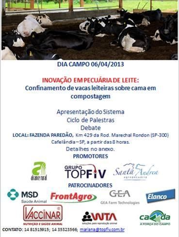 Confinamento de vacas leiteiras sobre camas em compostagem é tema do Dia de Campo sobre Inovações na Pecuária de Leite que acontecerá na Fazenda Paredão em Cafelândia-SP, no dia 06 de abril.