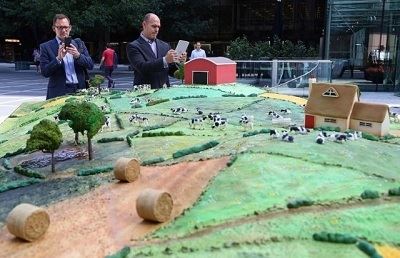 Em ação de marketing, cooperativa irlandesa usa 30 quilos de manteiga para elaborar bolo em forma de pastagem