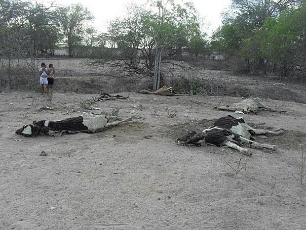 Rebanho morto em Itaíba, no Agreste de Pernambuco (Foto: Márcio Alves dos Santos / VC no G1)