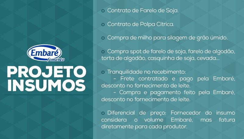Na ocasião, foram lançados os programas de Fomento da Embaré, que apesar de funcionarem desde 2005, tiveram um grande incremento e subsídio com a aprovação no Programa Leite Saudável do Governo Federal, que trata do aproveitamento por parte das indústrias do crédito de PIS/COFINS.