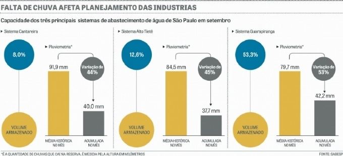 Ricardo Esper observa que enquanto as maiores se preparam mais, as empresas menores não têm dinheiro para investir e ficam dependentes do sistema. O diretor comercial da Daicast, empresa de injeção de alumínio para indústria automotiva e agrícola, relata dificuldade em viabilizar a construção de poços artesianos, devido a demora na autorização ambiental. No caso da Daicast, instalada em Guarulhos (SP), a solução encontrada foi a compra de água distribuída por caminhões pipa. Isso porque captação de água foi descartada. "Como vamos fazer captação de chuva se não chove?", questiona.