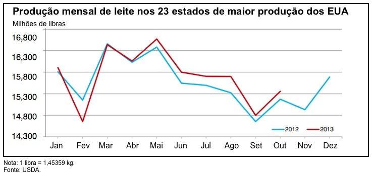Embora a produção tenha aumentado em 1% em todos os Estados Unidos, houve um aumento de 1,2% nos 23 estados de maior produção leiteira. Kansas registrou um aumento de 6,1% em outubro comparado com o mesmo mês do ano anterior. A Califórnia, Estado de maior produção, teve aumento de 1% e Wisconsin, número 2, de 0,9%.