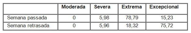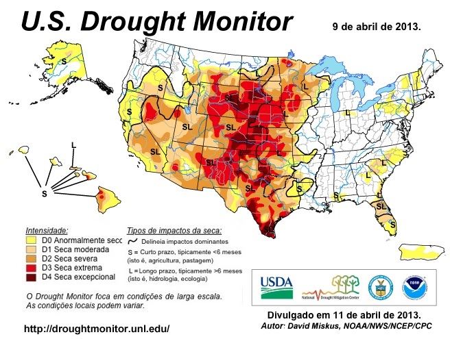 Atualmente 50,8% dos Estados Unidos estão em seca moderada ou severa, menos que os 51,92% na semana passada. De acordo com o Drought Monitor, havia quase dez meses que essa porcentagem não caía para menos de 51%.