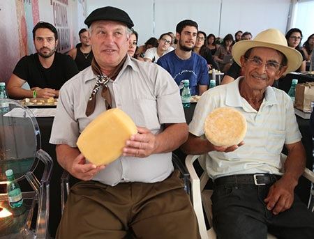 De bombachas, lenço e boina, Antonio Lopes de São José dos Ausentes, do Rio Grande do Sul, produtor do Serrano – queijo feito com leite cru, sal e coalho, sem fermento – falou sobre a dificuldade e a burocracia para produzir na região. “Querem aumentar a produção e não se preocupam com a qualidade. É uma luta!”, disse ele, que trouxe queijos no avião, “cheirando” a cabine.
