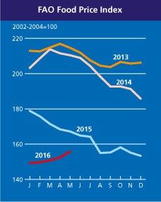 O índice de preços do açúcar ficou em 240,4 pontos, 11,7% superior ao verificado no último mês. O avanço foi sustentado pela perspectiva de produção menor na Índia, o segundo maior produtor global, assim como oferta mais apertada na China, que deverá impulsionar as importações. Dados indicam uma grande safra no Brasil, porém, inibiram um avanço ainda mais expressivo.