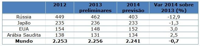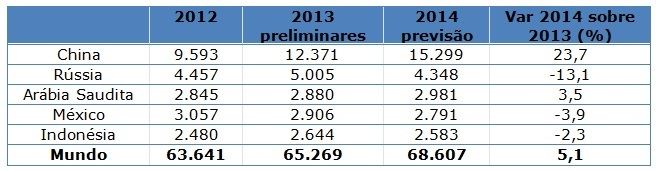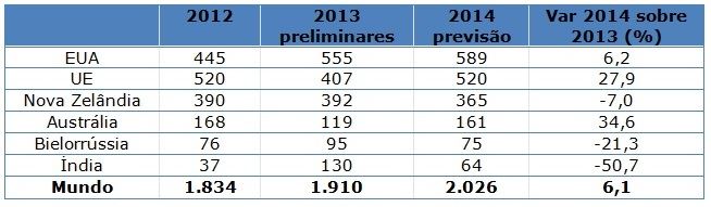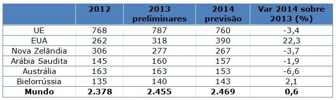 Entre os principais exportadores, a Nova Zelândia e os Estados Unidos deverão ver um aumento nas vendas em 2014. Além disso, mais oportunidades de mercado podem ser criadas para a Nova Zelândia devido ao embargo nas importações da Rússia de outros fornecedores. Ao mesmo tempo, o embargo pode reduzir as exportações pela UE.