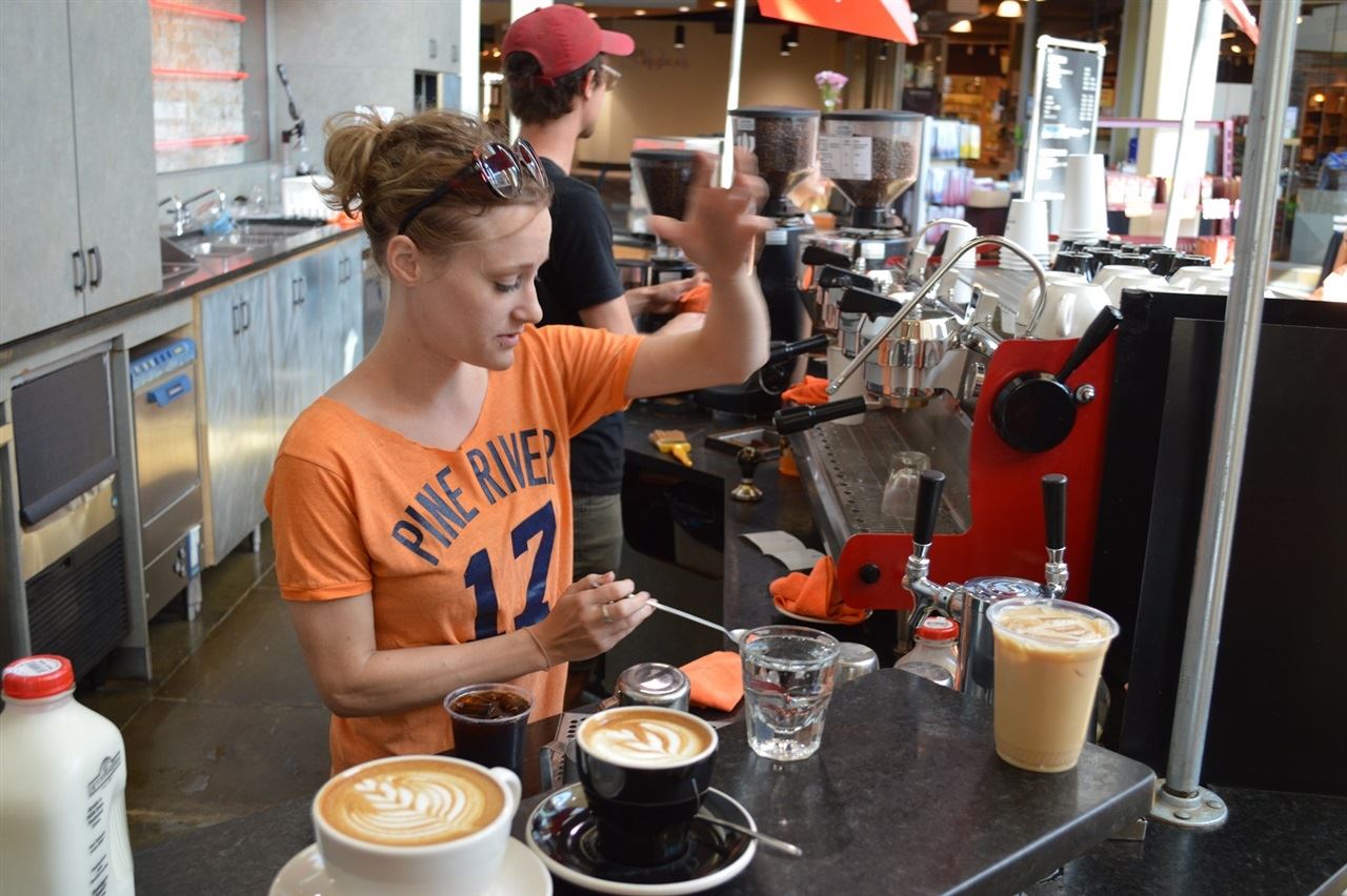 O leite importa, disse Fey, que compra mais de 100 garrafas (meio galão) para sua loja toda semana. “O Autumnwood parece ser o melhor (de todos os leites que experimentamos, especificamente com vapor. Uma vez sujeito ao vapor, um barista procura uma microespuma do leite que dá um sabor e uma aparência excelentes. As pessoas estão pagando por uma experiência e parte dessa experiência é visual”, disse Fey.