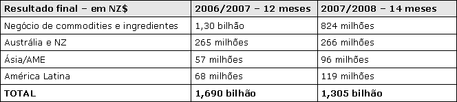 Resultados da Fonterra em 2007/08