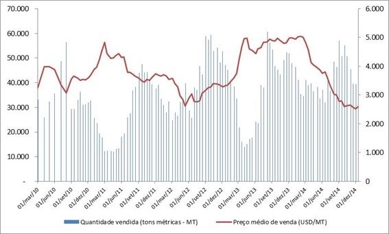 As toneladas comercializadas apresentaram mais queda (aproximadamente 10,0%), com um total de 35.390. Foi o menor valor desde junho deste ano.