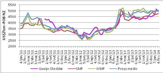 Gráfico 3: Histórico de variação de preços dos produtos lácteos (gDT)