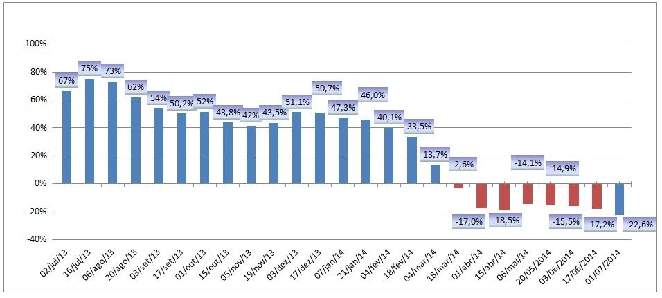 Os valores ainda se encontram abaixo dos praticados no ano passado, conforme pode ser visto no gráfico 2.