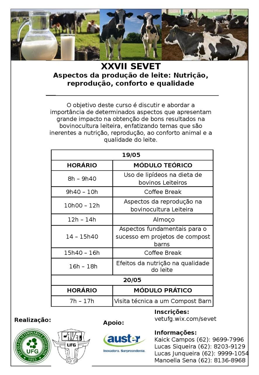 A Semana Acadêmica da Veterinária e Zootecnia/UFG tem como objetivo atualizar os alunos e demais interessados sobre as mais diversas áreas da Medicina Veterinária e da Zootecnia. Ela é realizada pelos alunos da faculdade e conta com a ajuda do corpo docente da Escola de Veterinária e Zootecnia (EVZ).