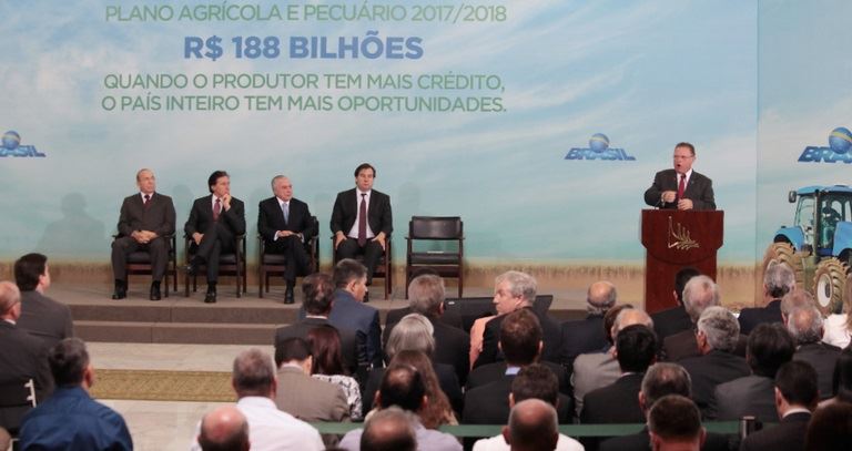 O presidente Michel Temer e o ministro Blairo Maggi (Agricultura, Pecuária e Abastecimento) anunciam, nesta quarta-feira (7), no Palácio do Planalto, o maior volume de recursos da história para financiar a agricultura brasileira. São R$ 190,25 bilhões destinados ao Plano Agrícola e Pecuário 2017/2018, por meio do qual médios e grandes produtores poderão acessar o crédito rural, entre 1º de julho deste ano e 30 de junho de 2018. O governo federal também reduziu, entre um e dois pontos percentuais, os juros das operações.