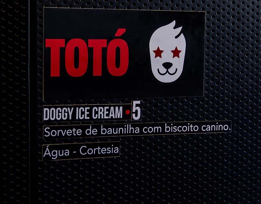 O Totó é feito com sorvete de baunilha (100% à base de leite) e servido com biscoito canino. O quitute sai por R$ 5 e vem com água de cortesia.
