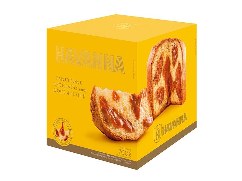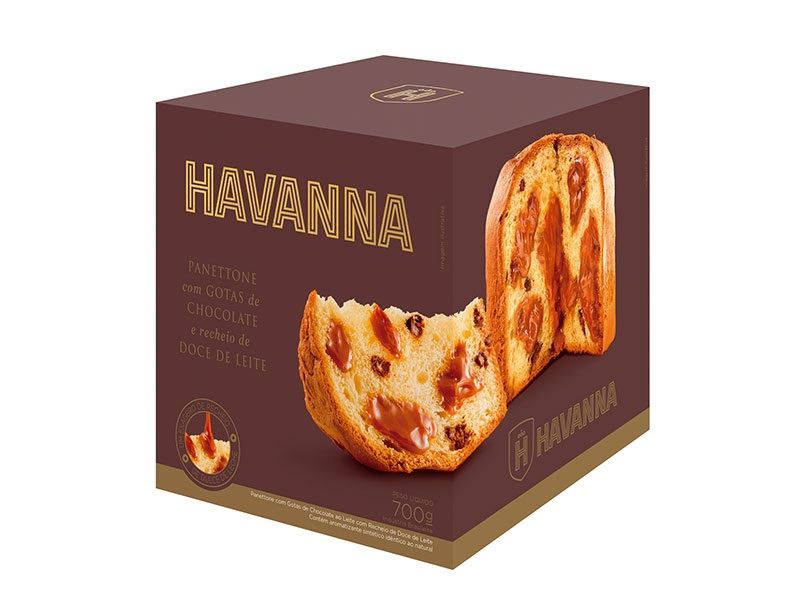 A Havanna traz o panettone recheado de doce de leite e panettone recheado de doce de leite com gotas de chocolate. Ambas as opções são encontradas nas versões 130g e 700g, além das versões de 700g em uma lata especial de Natal.