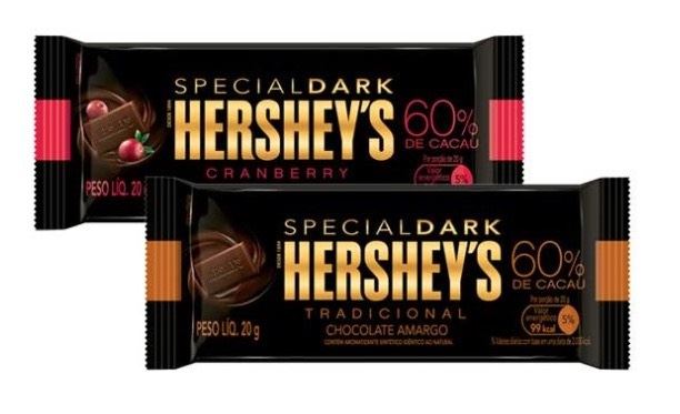 Em outubro, a Hershey´s vai lançar no Brasil um novo formato da sua linha premium Special Dark. Os sabores tradicional 60% cacau e cranberry 60% cacau ganharão a versão de barra de 20g.