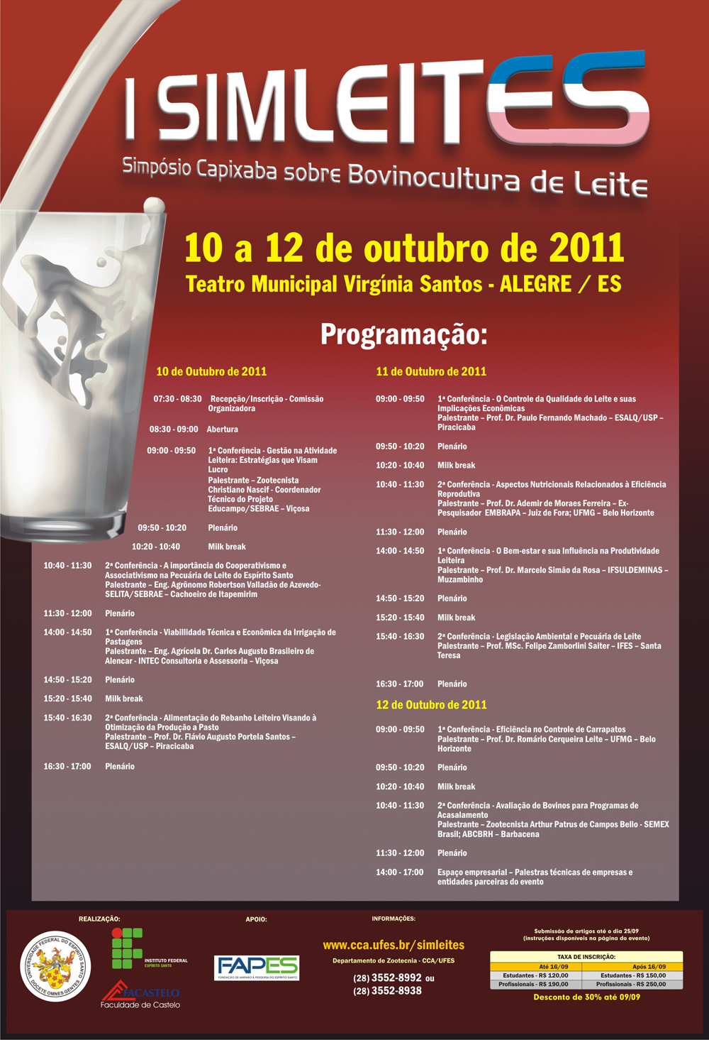 I SimleitES - Simpósio Capixaba sobre Bovinocultura de Leite, de 10 a 12 de Out